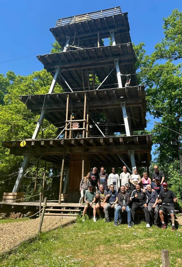 Un moment suspendu dans les arbres, entre rires, dépassement de soi et bonne humeur — l’occasion parfaite de partager un moment en dehors du quotidien professionnel.